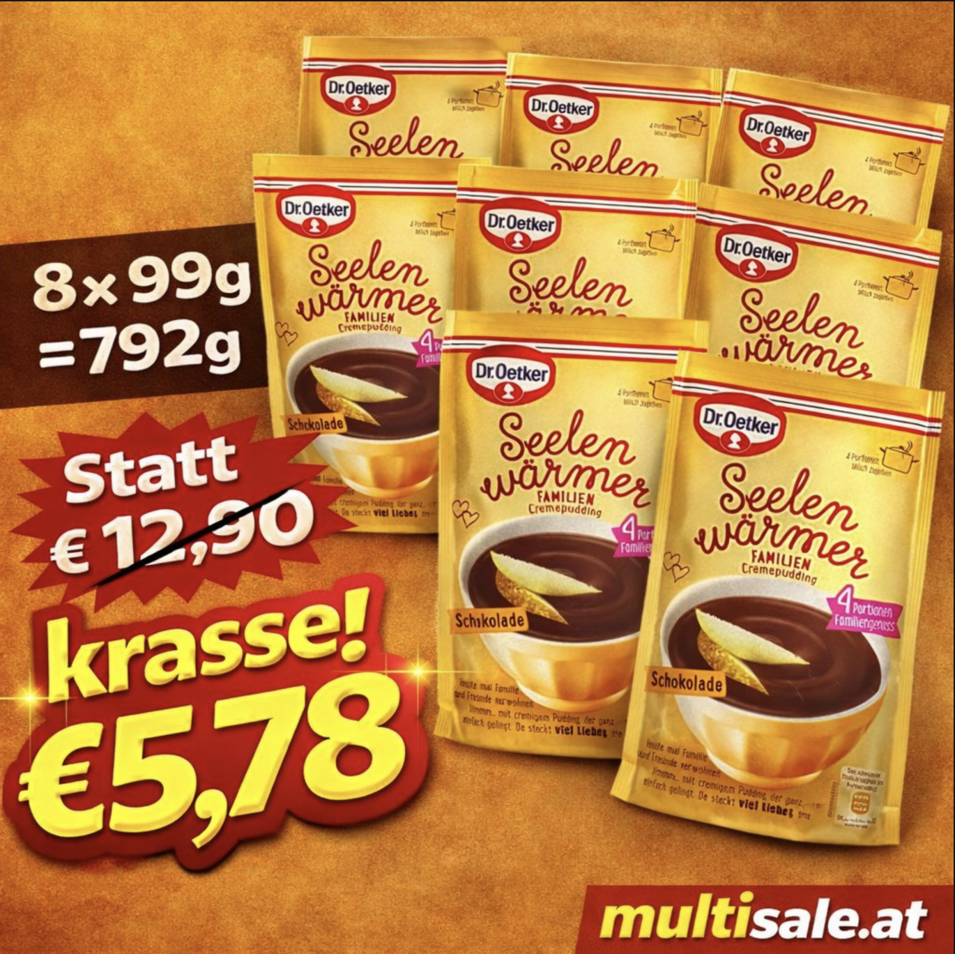 Dr. Oetker Seelenwärmer Familien-Cremepudding Schokolade 8 x 99g – MHD 05/2026