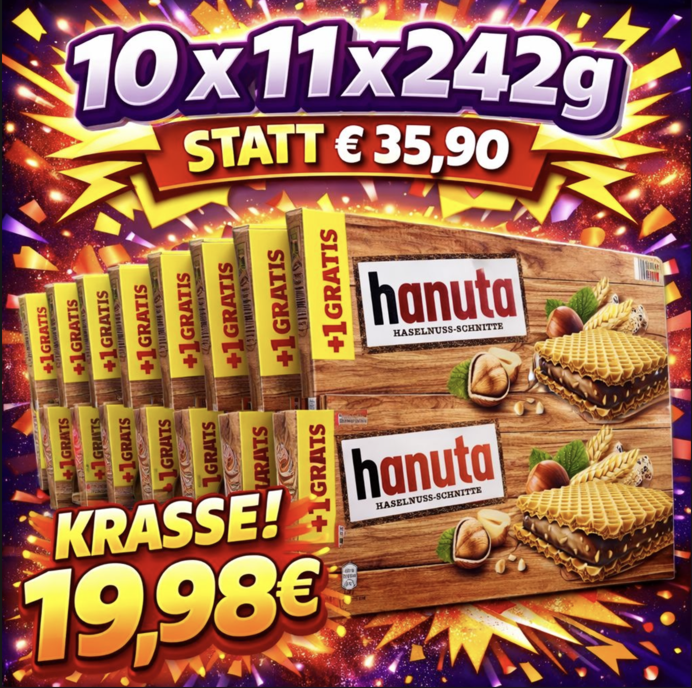 Ferrero Hanuta (10 x 10er-Packung +10 Stück Gratis) je 242g – MHD 24.04.2026
