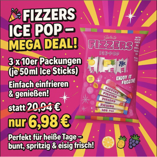 Schreibe die erste Rezension für „Fizzers Ice Pop 3 x 10x 50ml Ice Sticks“