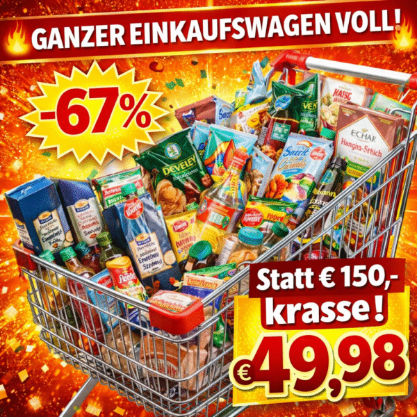 EIN GANZER EINKAUFSWAGEN – PRALL GEFÜLLT! SÜSSWAREN · LEBENSMITTEL · GETRÄNKE · KNABBEREIEN · u. v. m.