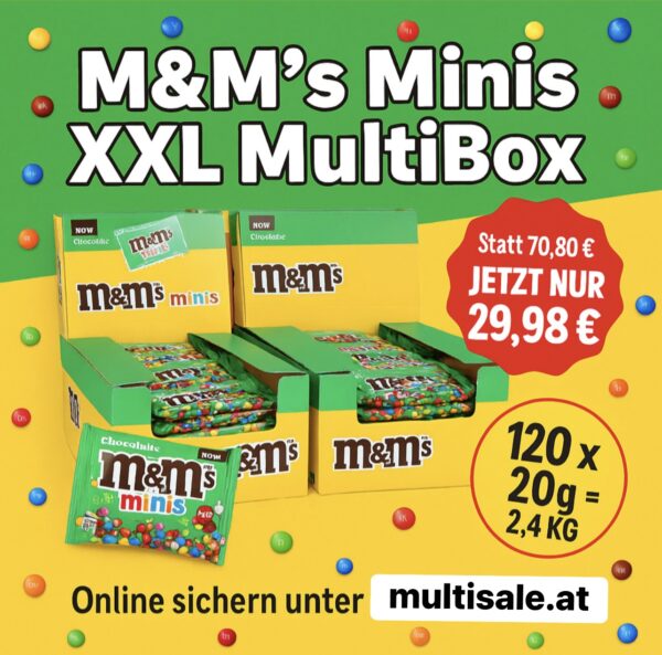 Zutaten: Zucker, Kakaomasse, MAGERMILCHPULVER, Kakaobutter, Molkepermeat (MILCH), Butterreinfett (MILCH), Stärke, Palmfett, Sheafett, Glukosesirup, Dextrin, Emulgator (SOJALECITHIN), Salz, Farbstoffe (E162, E170, E100, E133, E160a), Überzugsmittel (Carnaubawachs), Palmkernöl, Aroma. (Kann enthalten: ERDNÜSSE).
