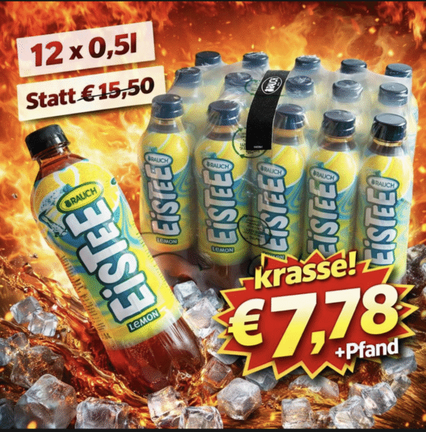Zutaten: Aufguss aus Schwarztee und Hagebutten (Wasser, Schwarztee, Hagebutten), Zucker, 1,5% Zitronensaft aus Zitronensaftkonzentrat, Säuerungsmittel: Citronensäure; Säureregulator: Natriumcitrate; Aroma.