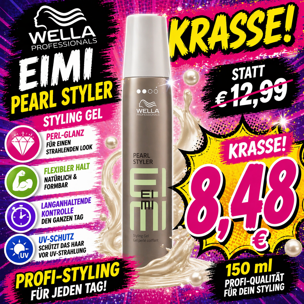 Professionelles Styling wie vom Friseur: Der Wella EIMI Pearl Styler sorgt für flexiblen Halt (Stufe 3) und ein edles Perlglanz-Finish. Das Styling-Gel ermöglicht vielseitige Looks – von natürlich bis definiert – ohne zu verkleben. Gleichzeitig schützt die Formel das Haar vor UV-Strahlung und verleiht langanhaltende Kontrolle für den ganzen Tag. Ideal für individuelles Styling mit professionellem Ergebnis.